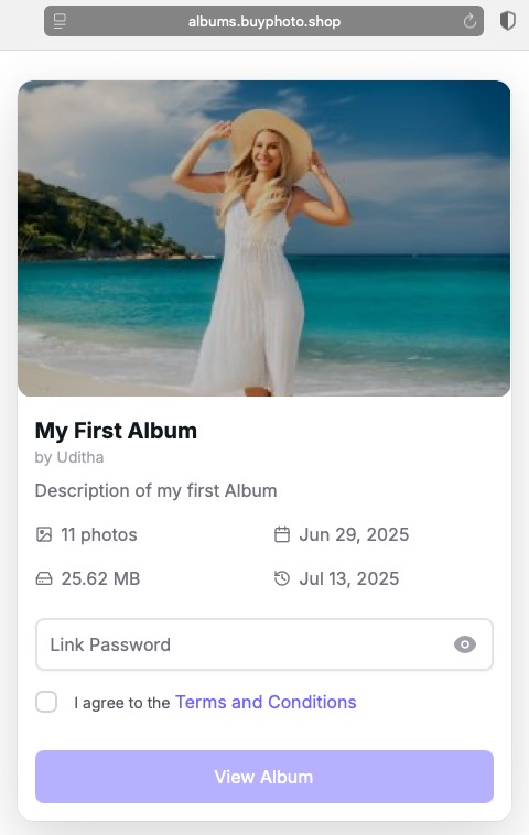 For enhanced security, the password is typically sent separately by the photographer, such as via SMS or another secure method.