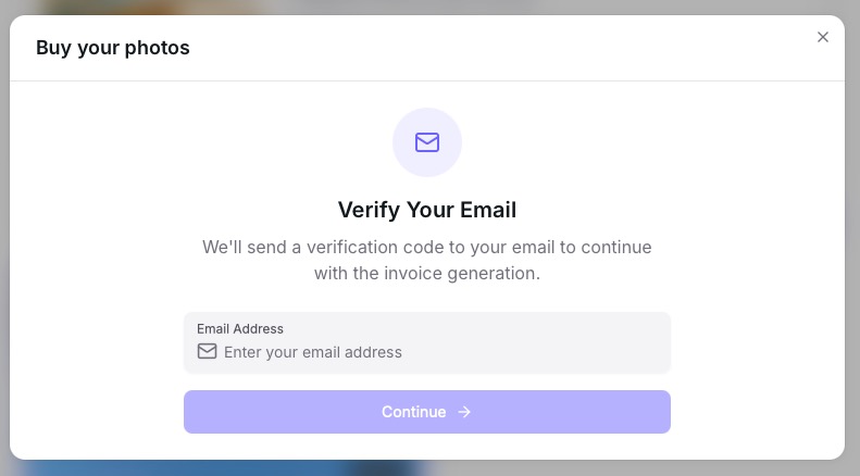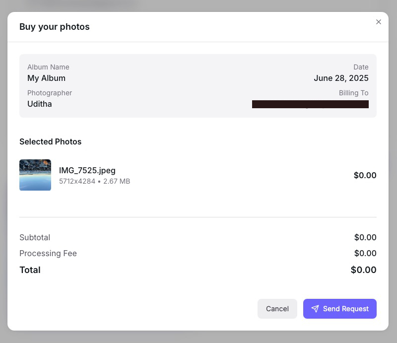Your email address is shared with the photographer and will serve as the primary method of communication, identification, and potentially for delivering the purchased photos.