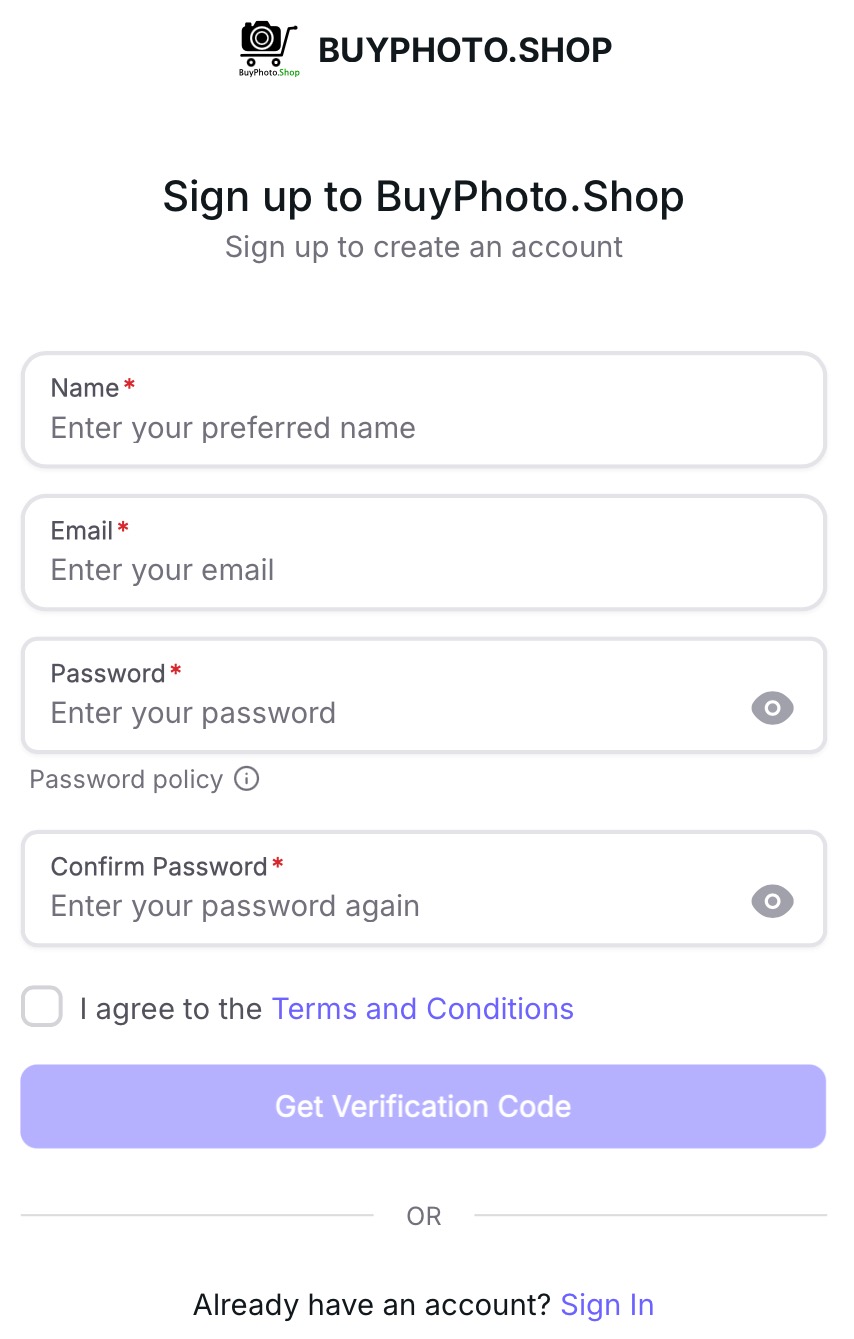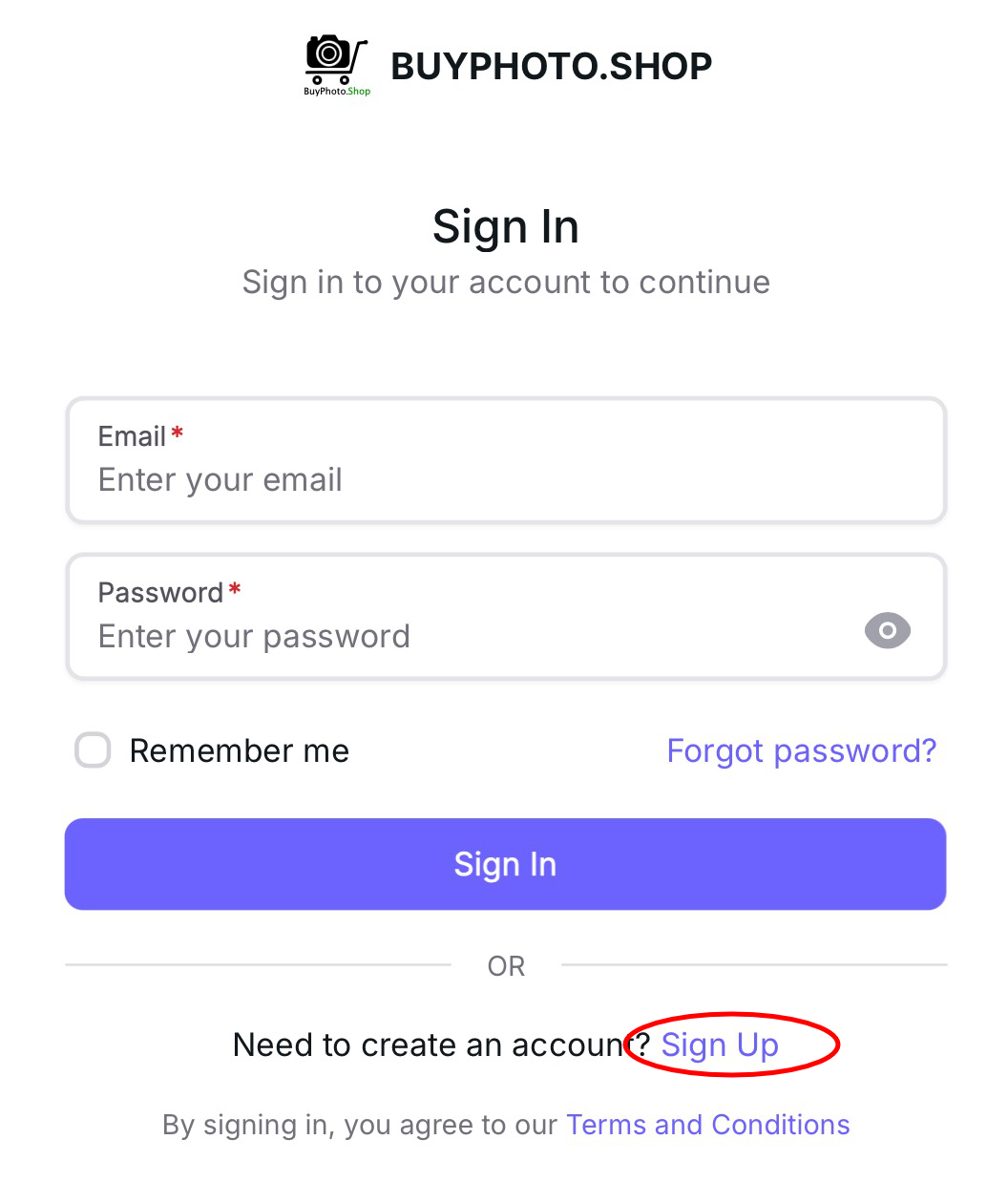Read the Terms and Condition and tick the box only if you accept the Terms and Condition. You cannot use BuyPhoto. Shop services if you do not agree with the Terms and Condition.
