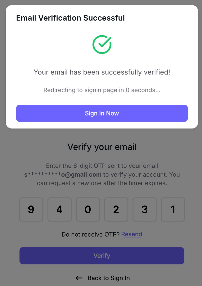 Verification code was sent to your email, enter the code to get it verified