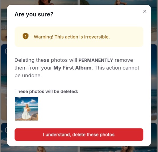 Confirm the selected photos and click “I understand, delete these photos” to complete the delete process.