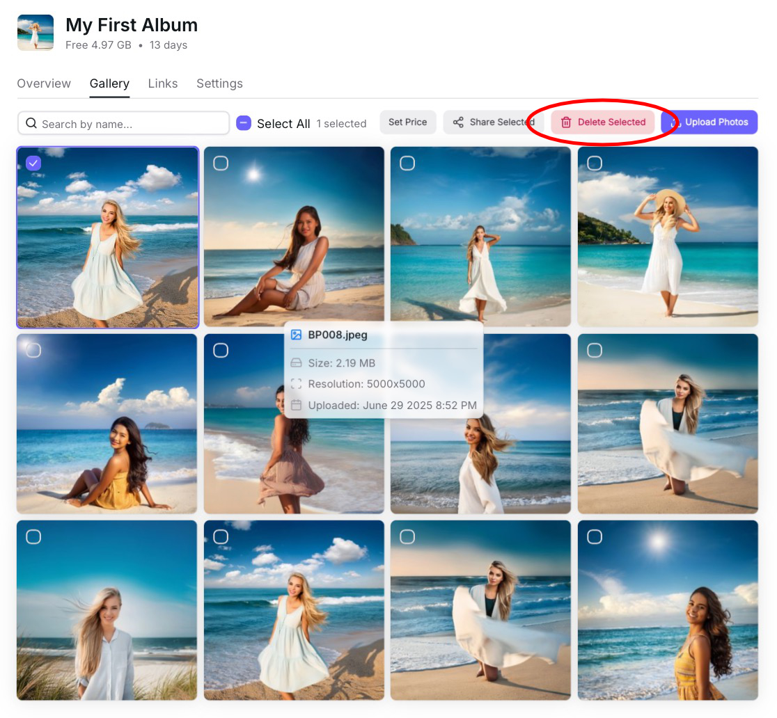 Use the “Delete Selected” option to delete the photos